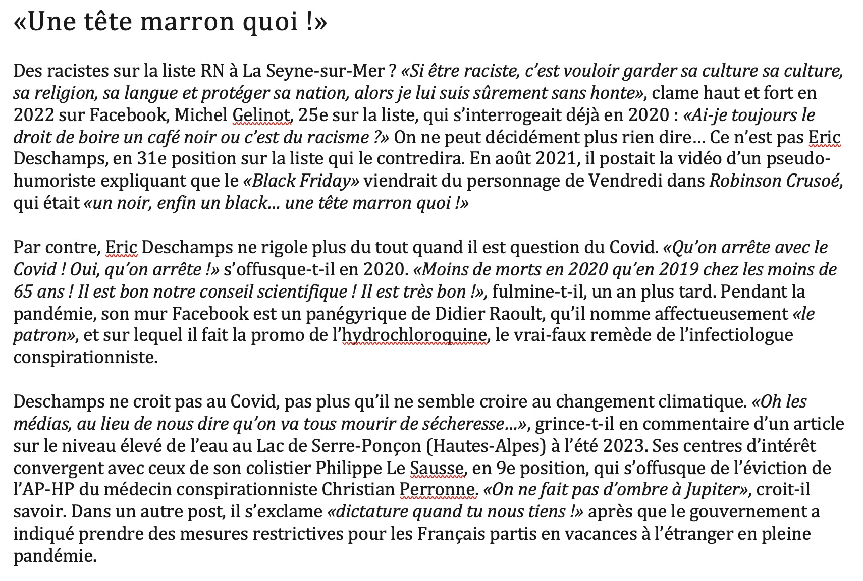 Les enjeux devenant très graves, nous nous permettons exceptionnellement de vous partager en plus des articles de La Marseillaise, des articles du Canard, Street Press et Libé.