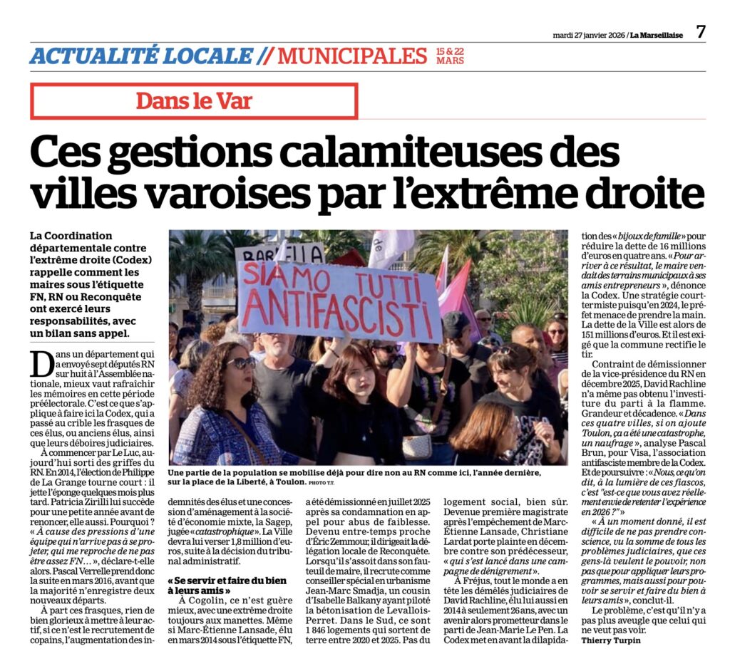 Dans un « reportage » sur les municipales à Toulon, TF1 a zappé deux candidates essentielles Brunel et Massi faisant ainsi la part belle à ceux choisis par l’Institut du Doigt Mouillé. Au rugby, pourtant, les demi- finales viennent avant la finale.